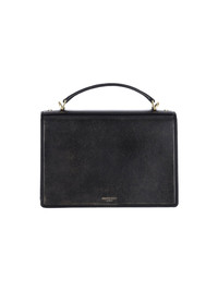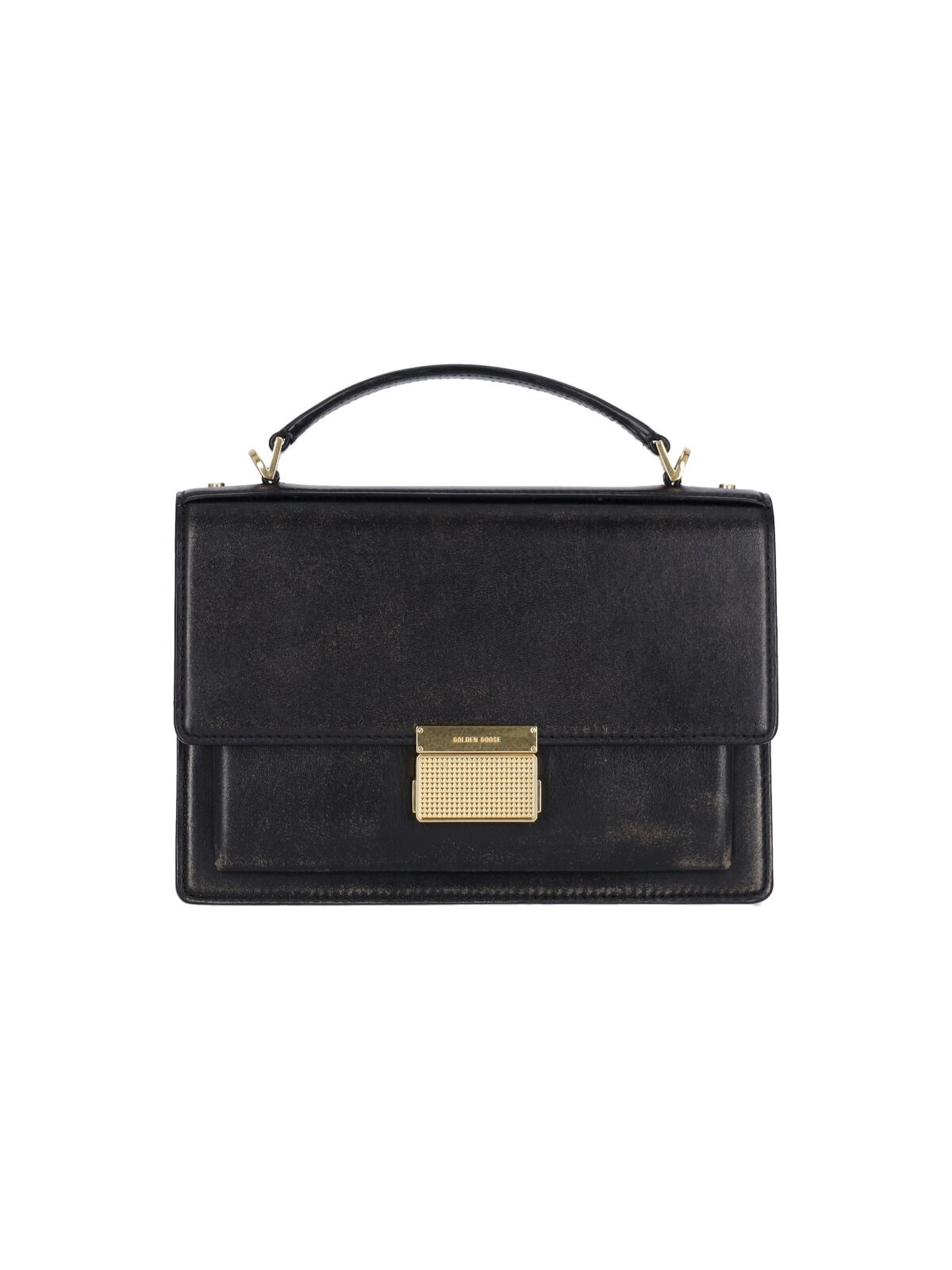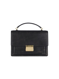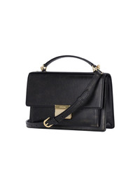 GOLDEN GOOSE VENEZIA BLACK LEATHER HANDBAG WITH HANDLE, ADJUSTABLE AND REMOVABLE SHOULDER STRAP, FLAP CLOSURE, GOLD LOGO DETAIL ON THE FRONT, LOGO PRINT ON THE BACK, INNER FLAT POCKET, AND TWO MAIN INNER COMPARTMENTS. PRODUCT INFO PRODUCT CODE GWA00467 A00059990100 COMPOSITION: 100% CALF LEATHER SIZE AND FIT: H 15 X W 21 X D 5 CM MADE IN: ITALY -HANDLE SPAN: 4 CM -STRAP DROP: 115CM
