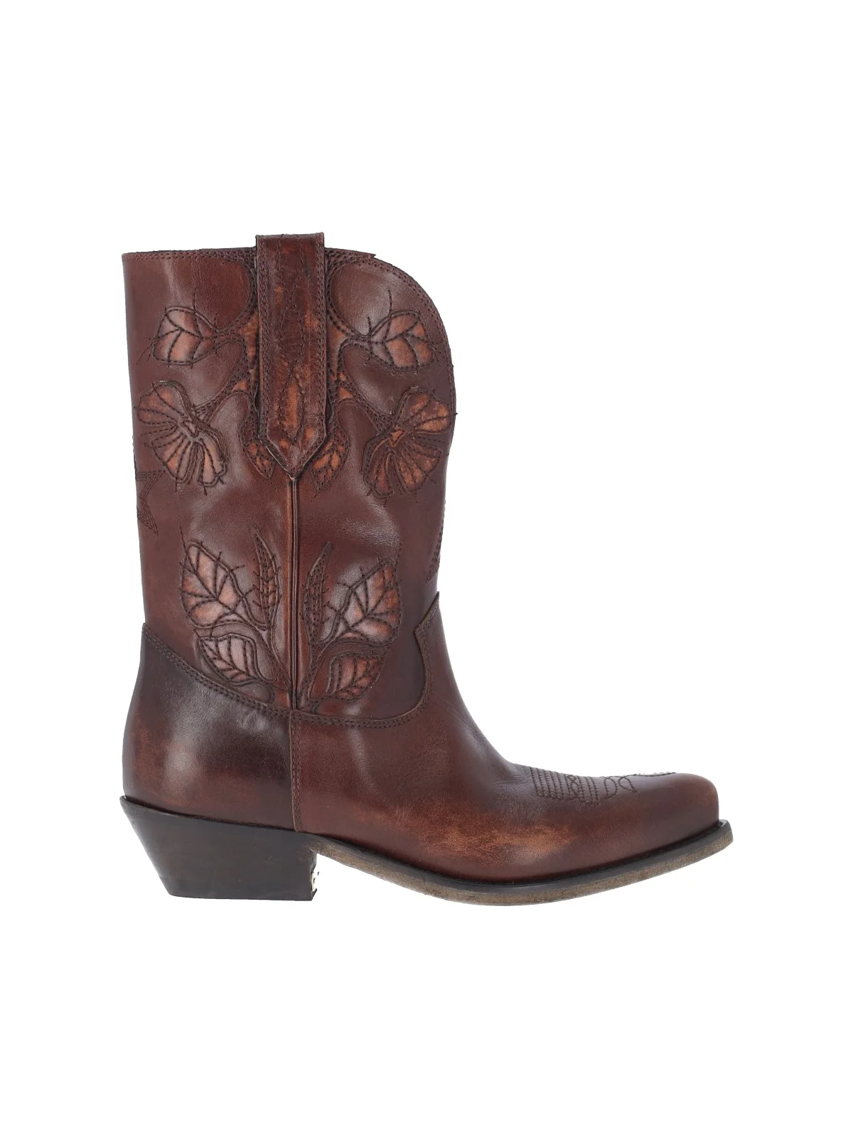 GOLDEN GOOSE 'WISH STAR' BROWN CALF LEATHER ANKLE BOOTS WITH POINTED TOE, ALL-OVER TONE-ON-TONE STITCHING DETAILS, SQUARE HEEL, LEATHER SOLE. PRODUCT INFO PRODUCT CODE GWF01051 F00820255381 COMPOSITION: 100% CALF LEATHER SIZE AND FIT: HEEL HEIGHT 4 CM MADE IN: ITALY