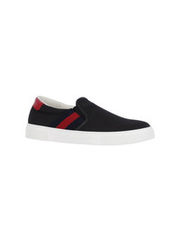 GUCCI ACE SNEAKERS IN BLACK COTTON WITH CALF LEATHER TRIM, ROUND TOE, TOP LOGO EMBROIDERY, BLUE AND RED GROSGRAIN WEB RIBBON ON THE SIDE, RED PATENT CALF LEATHER BACK TAB, CROCODILE PRINT PATTERN, GOLD LOGO PRINT DETAIL, SLIP-ON FIT, AND TEXTURED RUBBER SOLE. PRODUCT INFO PRODUCT CODE 834216 FAEN81051 COMPOSITION: 100% COTTON MADE IN: ITALY - TRIMS: 100% CALF LEATHER - SOLE: 100% RUBBER