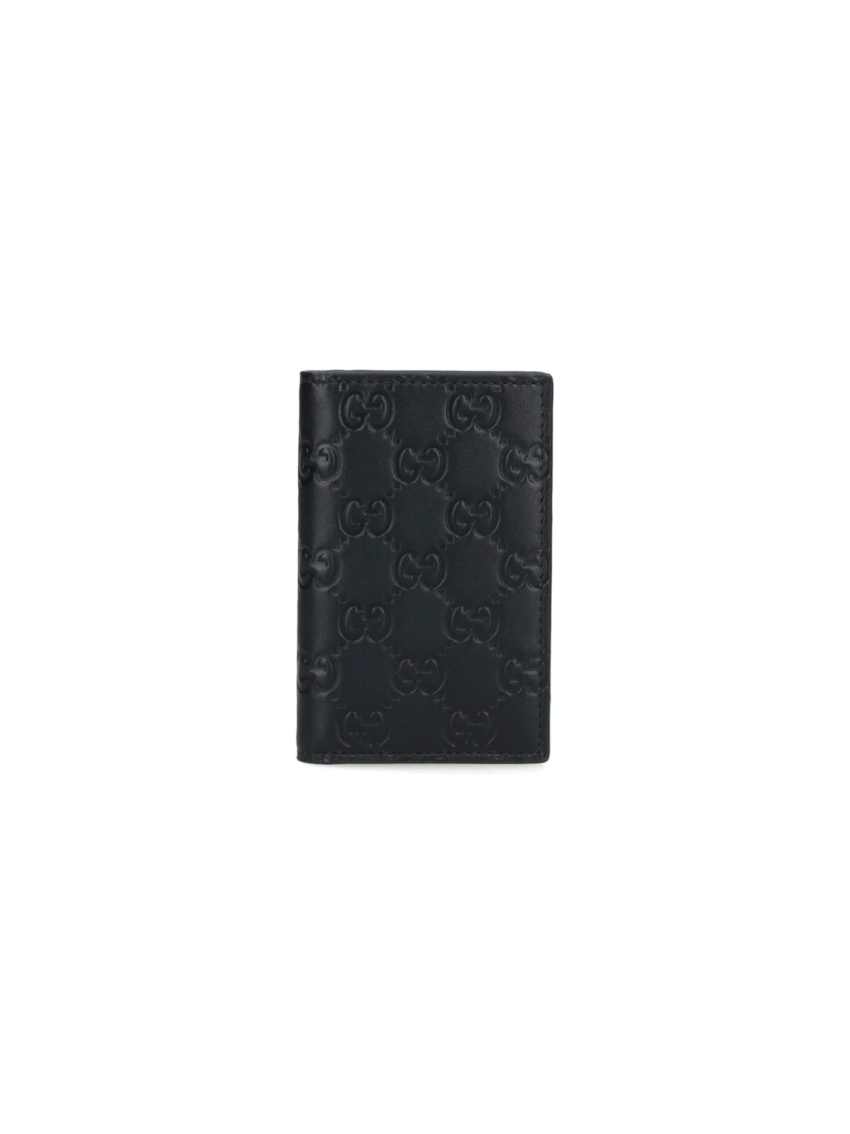 GUCCI GG EMBLEM BLACK CALF LEATHER CARD HOLDER WITH ALL-OVER EMBOSSED GG SUPREME PATTERN, BI-FOLD DESIGN, EIGHT INNER CARD SLOTS, ONE OUTER POCKET. PRODUCT INFO PRODUCT CODE 850183 AAFDV1000 COMPOSITION: 100% CALF LEATHER SIZE AND FIT: H 12 X W 7.5 CM MADE IN: ITALY