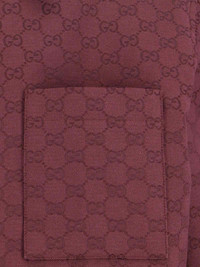 GUCCI 'GG SUPREME' RED COTTON JACKET IN BURGUNDY SHADE WITH ALL-OVER GG SUPREME LOGO PATTERN, CLASSIC COLLAR, ZIP CLOSURE, LONG SLEEVES, FRONT POCKET, INNER ZIP POCKET, CURVED HEM. PRODUCT INFO PRODUCT CODE 832286 ZAF4S5367 COMPOSITION: 100% COTTON SIZE AND FIT: REGULAR FIT MADE IN: ITALY