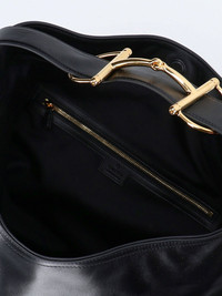GUCCI LARGE BEATRIX SHOULDER BAG IN BLACK CALF LEATHER WITH ADJUSTABLE TOP HANDLE, GOLD METAL "HORSEBIT" DETAIL ON THE HANDLE, AND SINGLE MAIN INNER COMPARTMENT. PRODUCT INFO PRODUCT CODE 850546 AAFK41000 COMPOSITION: 100% CALF LEATHER SIZE AND FIT: H 36 X W 40 X D 12 CM MADE IN: ITALY - HANDLE DROP: 20 CM
