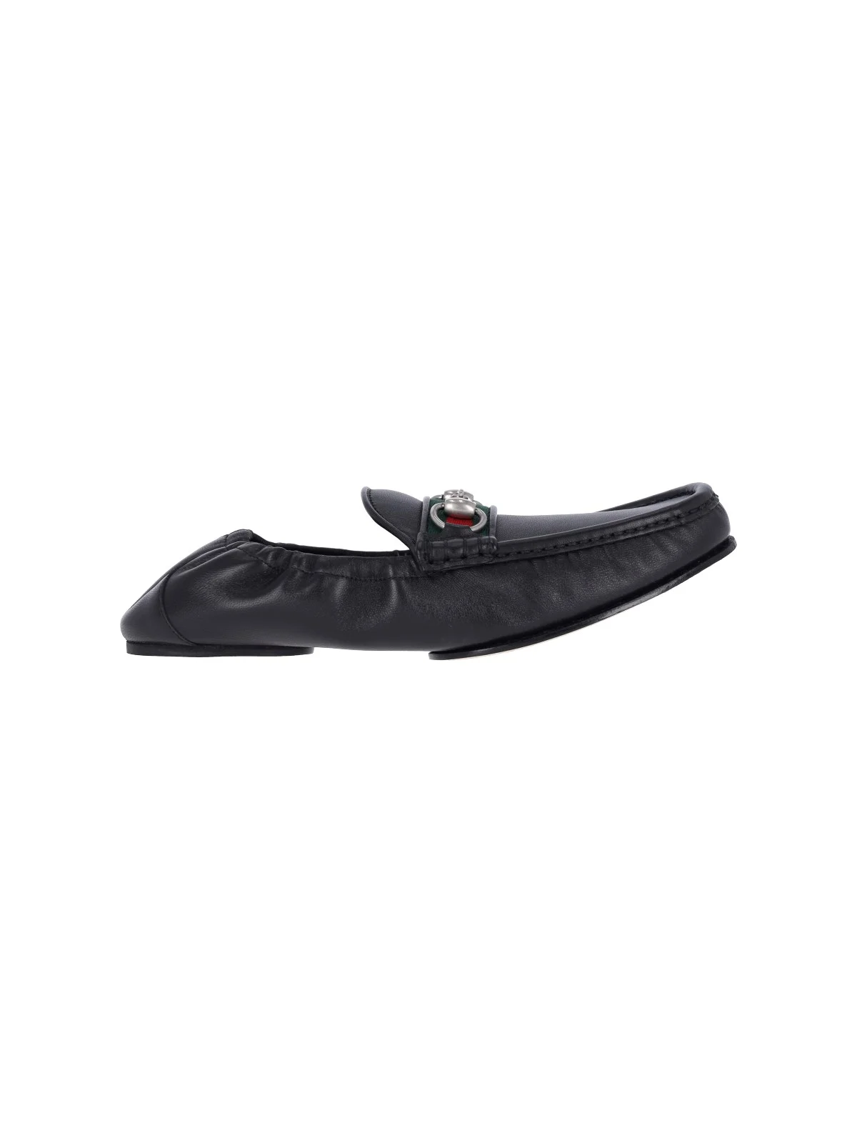 GUCCI 'HORSEBIT 1953' LOAFERS IN BLACK LAMBSKIN WITH ROUND TOE, SLIP-ON FIT, 'WEB' TRIM WITH GREEN AND RED DETAILS ON THE FRONT, SILVER METAL HARDWARE DETAIL ON THE FRONT, ELASTIC BACK, TWO-PIECE LEATHER SOLE. PRODUCT INFO PRODUCT CODE 852065 AAFSE1060 COMPOSITION: 100% LAMBSKIN MADE IN: ITALY - 100% LEATHER SOLE