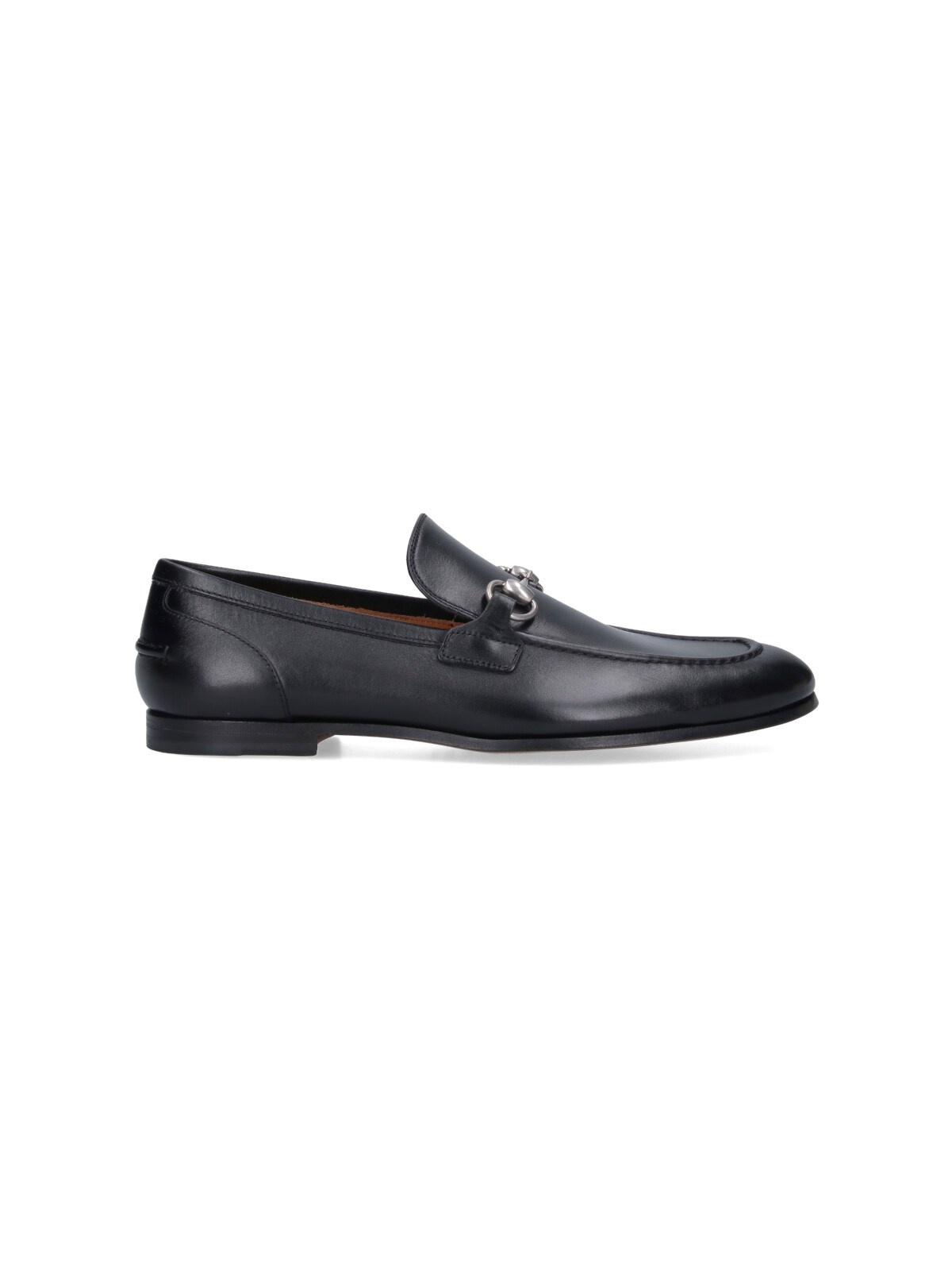GUCCI "JORDAAN" BLACK LEATHER LOAFERS WITH ROUND TOE, SILVER METAL TOP CLAMP, SLIP-ON FIT, LEATHER SOLE. PRODUCT INFO PRODUCT CODE 834289 AADCW1000 COMPOSITION: 100% CALF LEATHER MADE IN: ITALY - SOLE: 100% LEATHER