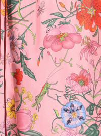 GUCCI PINK AND RED "ANCORA" SILK PANTS WITH BOW, ALL-OVER MULTICOLOR FLORAL PRINT, BOW DETAIL KNOTTED AT THE FRONT, DRAWSTRING ELASTIC WAISTBAND, ZIP AND BUTTON CLOSURE, TWO SIDE POCKETS, LOGO PRINT ON THE FRONT, TWO MESH WELT POCKETS, STRAIGHT LEG. PRODUCT INFO PRODUCT CODE 837980 Z7AUH5057 COMPOSITION: 100% SILK SIZE AND FIT: SOFT FIT MADE IN: ITALY