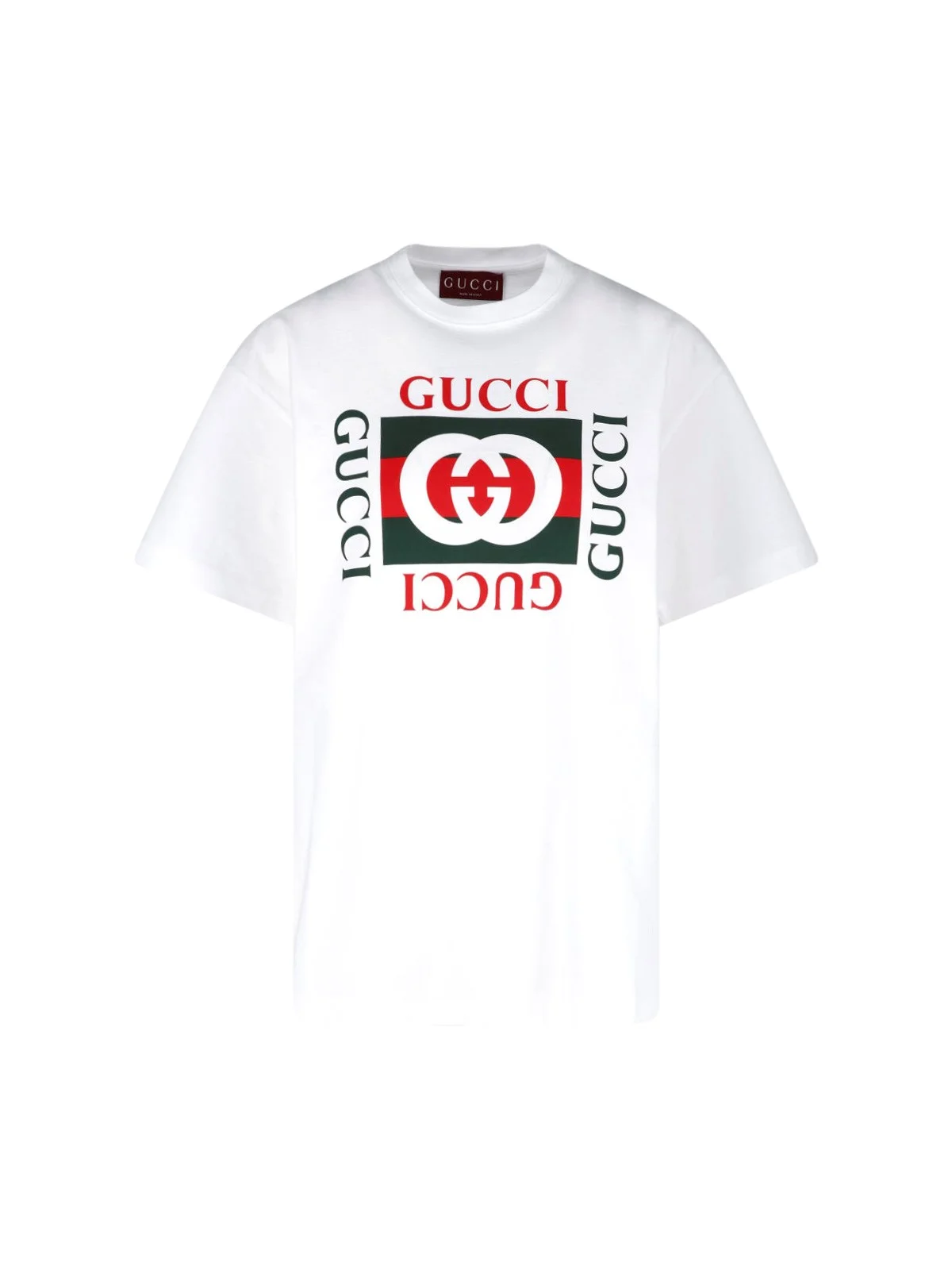 - T-SHIRT “GG” GUCCI IN WHITE COTTON JERSEY - CREW NECK - RIBBED FINISHES - LARGE LOGO PRINT ON THE FRONT PRODUCT INFO PRODUCT CODE 788093 XJGL39669 COMPOSITION: 100% COTTON SIZE AND FIT: REGULAR FIT MADE IN: ITALY
