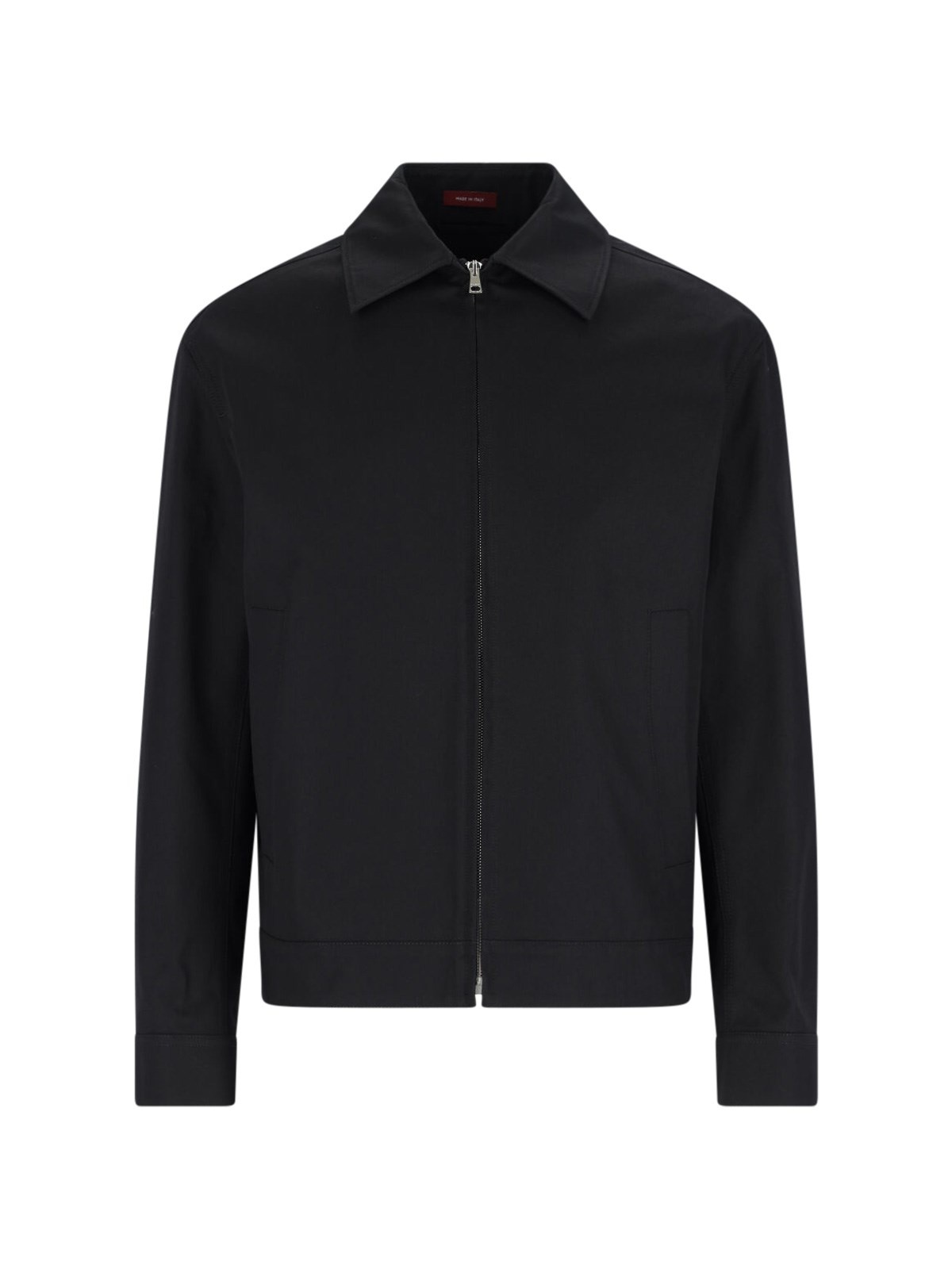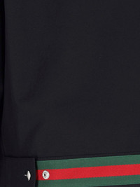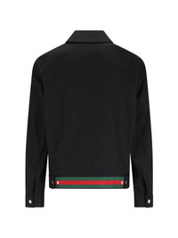 GUCCI 'WEB' BLACK COTTON ZIP JACKET WITH CLASSIC COLLAR, ZIP CLOSURE, TWO SIDE POCKETS, BUTTON STRAPS AT THE BACK, MULTICOLOR GROSGRAIN WEB LOGO ON THE BACK, BUTTON CUFFS, STRAIGHT HEM. PRODUCT INFO PRODUCT CODE 827503 ZAQH51000 COMPOSITION: 100% COTTON SIZE AND FIT: REGULAR FIT MADE IN: ITALY