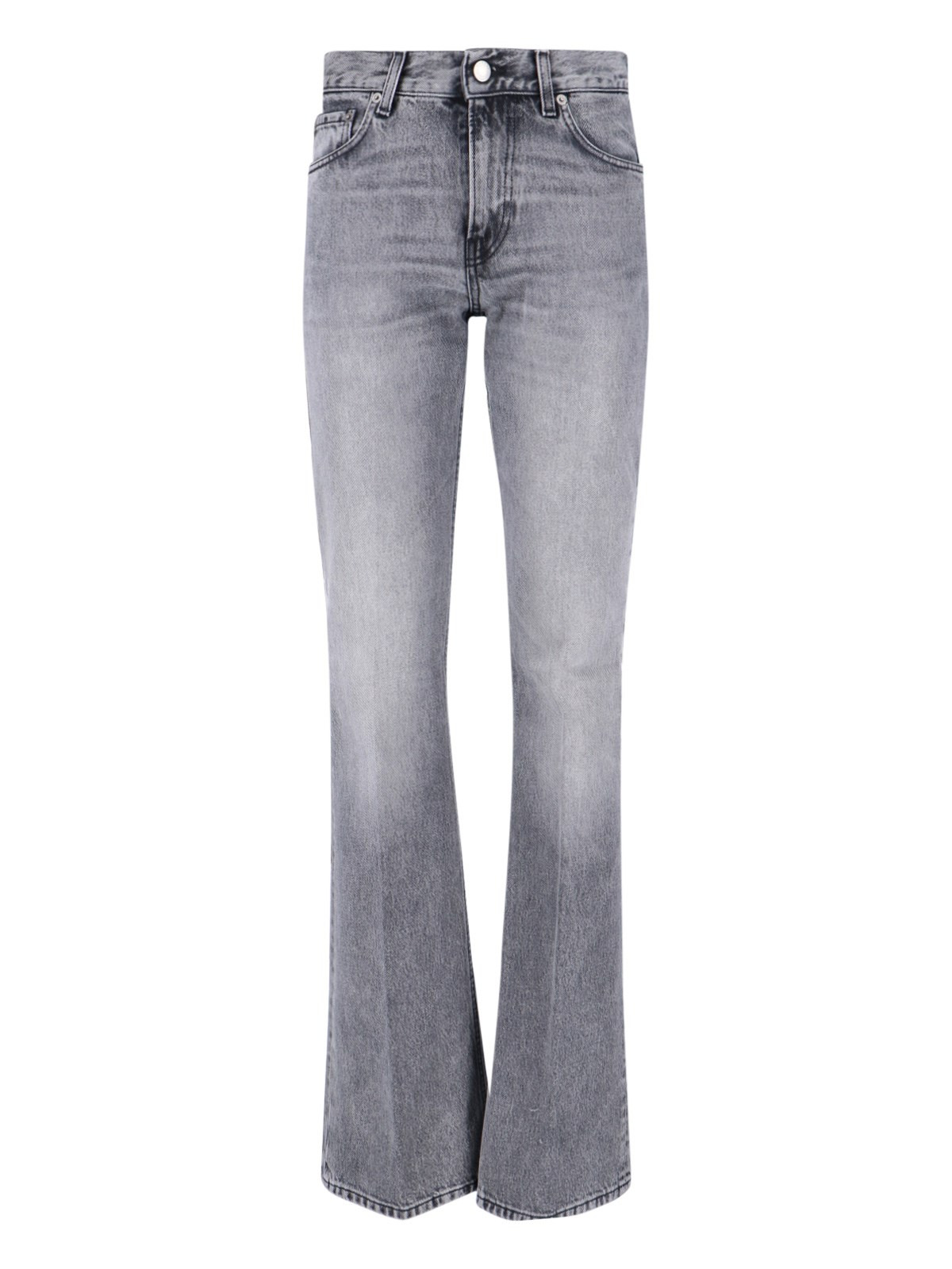 "FLORA" BOOTCUT JEANS IN GRAY COTTON WITH DISTRESSED WASH, HIGH WAIST, BELT LOOPS, BUTTON AND ZIP CLOSURE, FIVE POCKETS, LOGO PATCH ON THE BACK, STRAIGHT LEG. PRODUCT INFO PRODUCT CODE HEW03338DF119L0895L0895 COMPOSITION: 100% COTTON SIZE AND FIT: REGULAR FIT