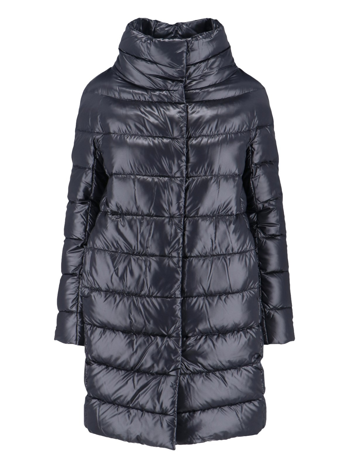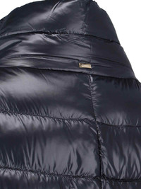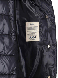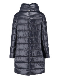 HERO LONG 'DORA' DOWN JACKET IN NAVY BLUE FABRIC WITH HIGH NECK, ZIP AND BUTTON CLOSURE, TWO SIDE POCKETS, GOLD METAL LOGO TAG AT THE BACK, STRAIGHT HEM. PRODUCT INFO PRODUCT CODE PI0177DIC 12017Z9300 COMPOSITION: 100% POLYAMIDE SIZE AND FIT: REGULAR FIT MADE IN: ROMANIA