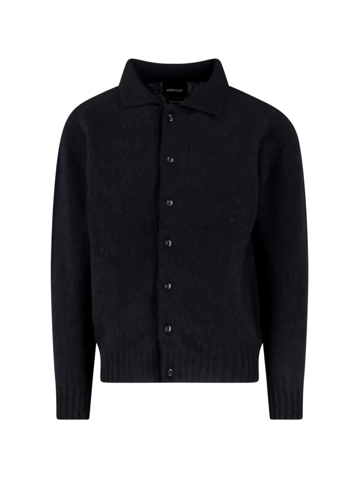 BLACK HOWLIN WOOL CARDIGAN WITH CLASSIC COLLAR, BUTTON CLOSURE, RIBBED TRIMS, STRAIGHT HEM. PRODUCT INFO PRODUCT CODE CREATURES OF THE HOWLIN’ MOONBLACK COMPOSITION: 100% WOOL SIZE AND FIT: REGULAR FIT MADE IN: UNITED KINGDOM