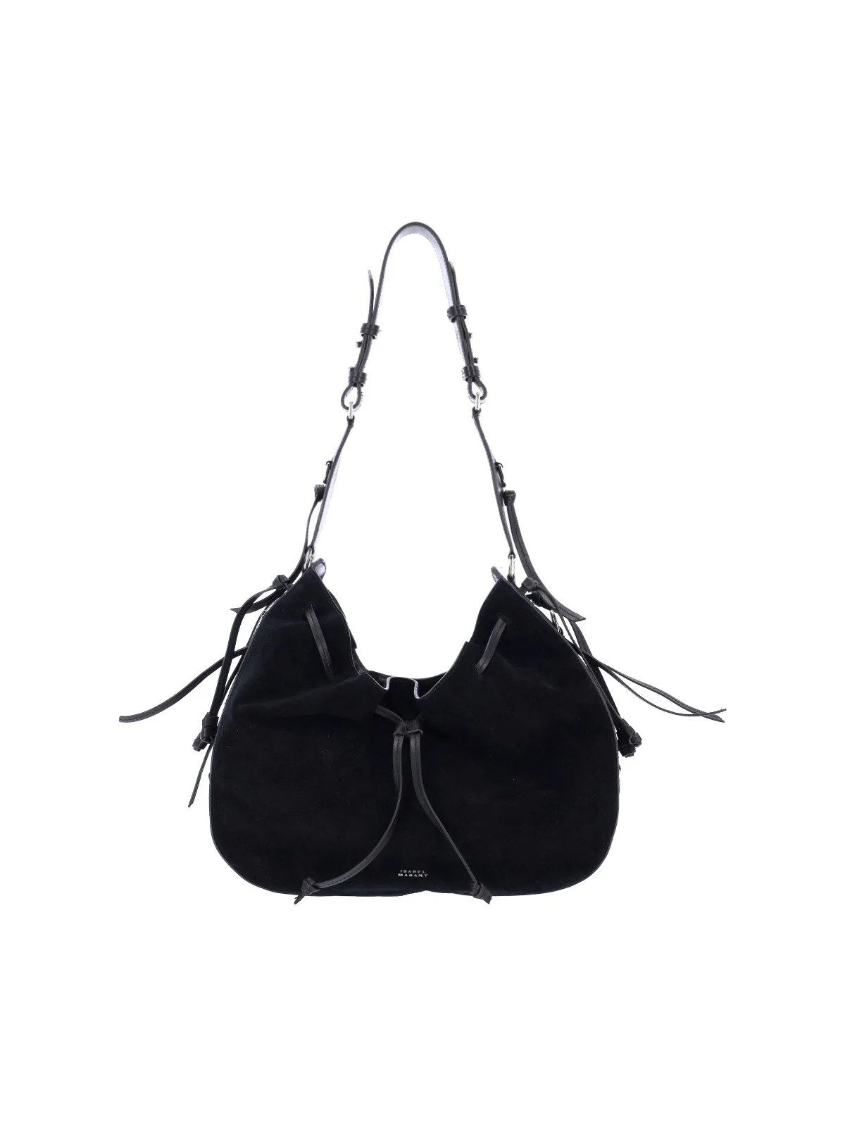 ISABEL MARANT 'BOLTON' SHOULDER BAG IN BLACK SUEDE WITH ADJUSTABLE AND REMOVABLE SHOULDER STRAP, DRAWSTRING AND MAGNETIC FLAP CLOSURE, REMOVABLE ZIP POUCH, LOGO DETAIL ENGRAVED ON THE FRONT, MAIN INNER COMPARTMENT. PRODUCT INFO PRODUCT CODE PP0407FA D1C29MBKSI COMPOSITION: 100% CALF LEATHER SIZE AND FIT: H 25 X W 38.5 X D 8 CM MADE IN: TUNISIA - STRAP DROP: 71 CM - TRIMS: 100% METAL