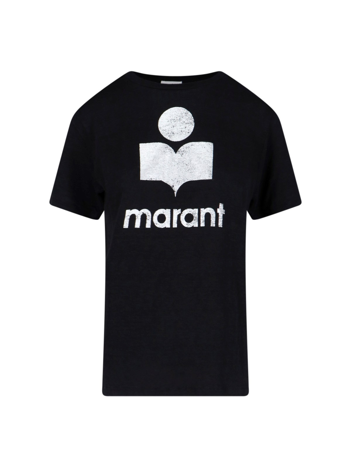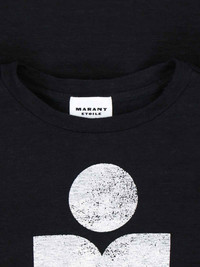 ISABEL MARANT ÉTOILE LINEN T-SHIRT IN BLACK WITH CREWNECK, SHORT SLEEVES, CONTRASTING FRONT LOGO, STRAIGHT HEM. PRODUCT INFO PRODUCT CODE TS0001FB A1N10E01BK COMPOSITION: 100% LINEN SIZE AND FIT: ADJUST MADE IN: TUNISIA
