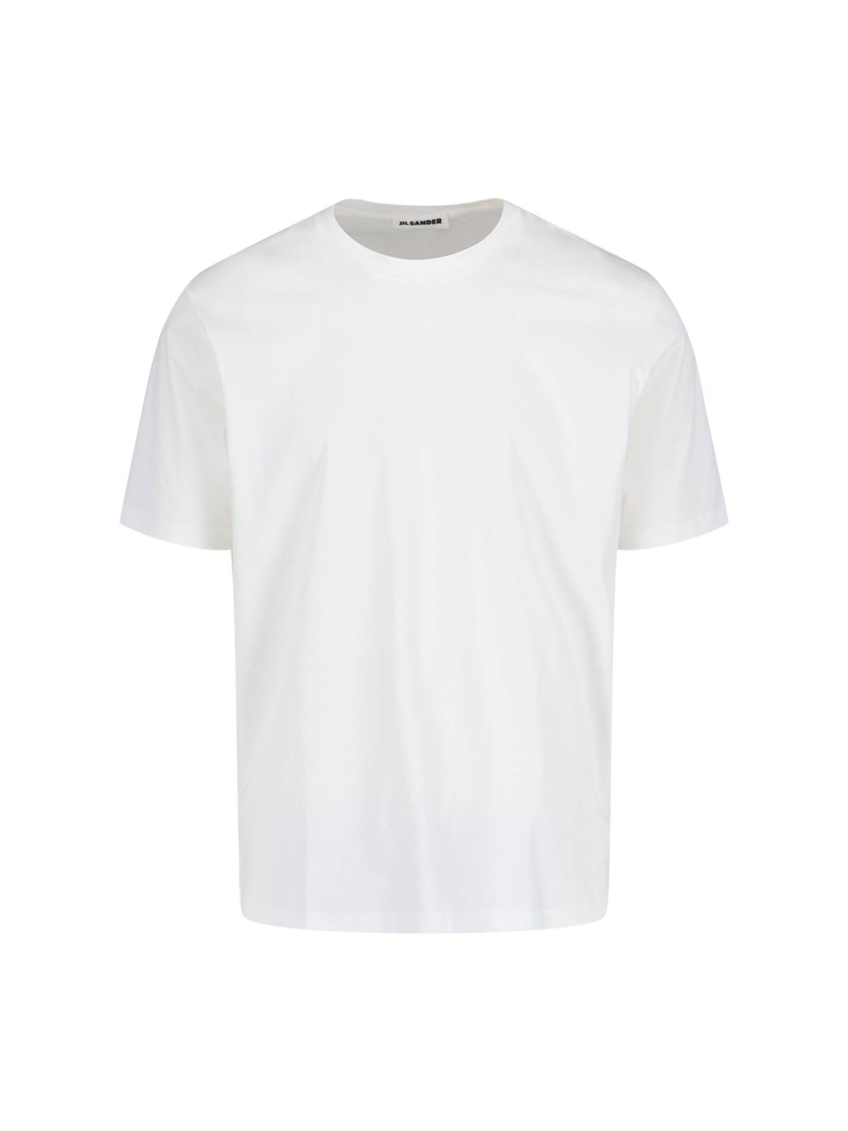 CLASSIC JIL SANDER WHITE COTTON CREW NECK T-SHIRT WITH SHORT SLEEVES, STRAIGHT HEM. PRODUCT INFO PRODUCT CODE J21GC0016 J45051100 COMPOSITION: 100% COTTON SIZE AND FIT: REGULAR FIT MADE IN: ITALY