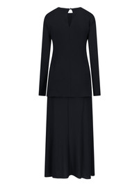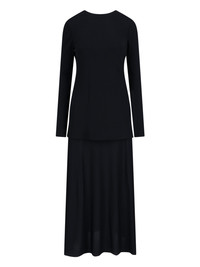 JIL SANDER FLARED MIDI DRESS IN BLACK VISCOSE BLEND LAYERED DESIGN, CREW NECK, SINGLE BUTTON CLOSURE AT THE BACK, FLARED HEM. PRODUCT INFO PRODUCT CODE J04CT0110 J65016001 COMPOSITION: 82% VISCOSE, 18% POLYAMIDE SIZE AND FIT: REGULAR FIT MADE IN: ITALY