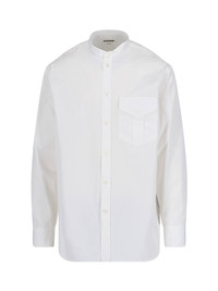JIL SANDER KOREAN SHIRT IN WHITE COTTON WITH KOREAN COLLAR, BUTTON CLOSURE, LOGO EMBROIDERY DETAIL, BUTTON FLAP POCKET ON THE CHEST, BUTTON CUFFS, CURVED HEM. PRODUCT INFO PRODUCT CODE J24DL0112 J45001100 COMPOSITION: 100% COTTON SIZE AND FIT: REGULAR FIT MADE IN: ITALY - "COLLAR CM" SIZE SCALE