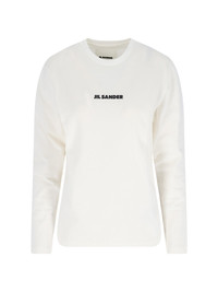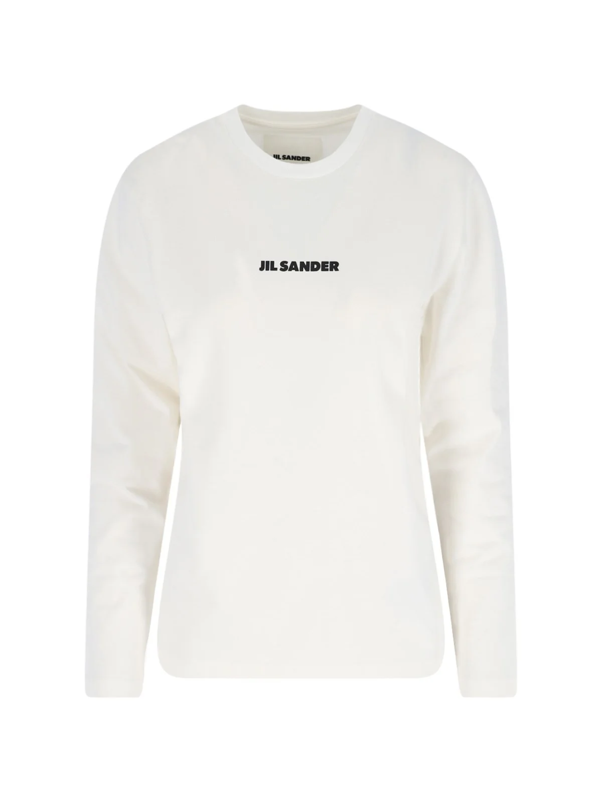JIL SANDER LOGO SWEATER IN WHITE COTTON WITH CREWNECK, LONG SLEEVES, CONTRASTING PRINTED LOGO ON THE FRONT, AND STRAIGHT HEM. PRODUCT INFO PRODUCT CODE J02GC0141 J20103102 COMPOSITION: 100% COTTON SIZE AND FIT: REGULAR FIT MADE IN: ITALY