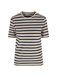 JIL SANDER STRIPED CREAM COTTON CREW NECK T-SHIRT WITH SHORT SLEEVES, STRAIGHT HEM. PRODUCT INFO PRODUCT CODE J40GC0111 J46497124 COMPOSITION: 100% COTTON SIZE AND FIT: REGULAR FIT MADE IN: ITALY