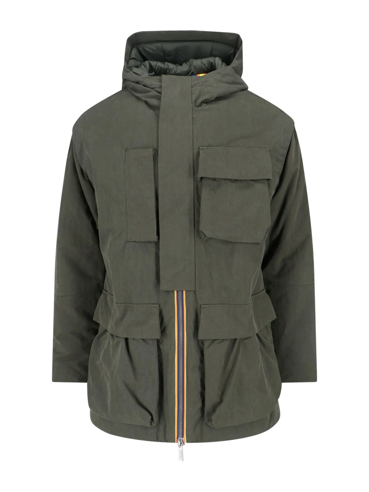 K-WAY 'GULLIERMO' JACKET IN GREEN FABRIC WITH DRAWSTRING HOOD, DOUBLE ZIP CLOSURE, FOUR FRONT POCKETS, MULTICOLOR LOGO ON THE FRONT, PRIMALOFT® DETAILS, INNER ZIP POCKET, INNER FLAT POCKET, STRAIGHT HEM. PRODUCT INFO PRODUCT CODE K7136CWB2N COMPOSITION: 100% POLYESTER SIZE AND FIT: REGULAR FIT MADE IN: CHINA
