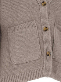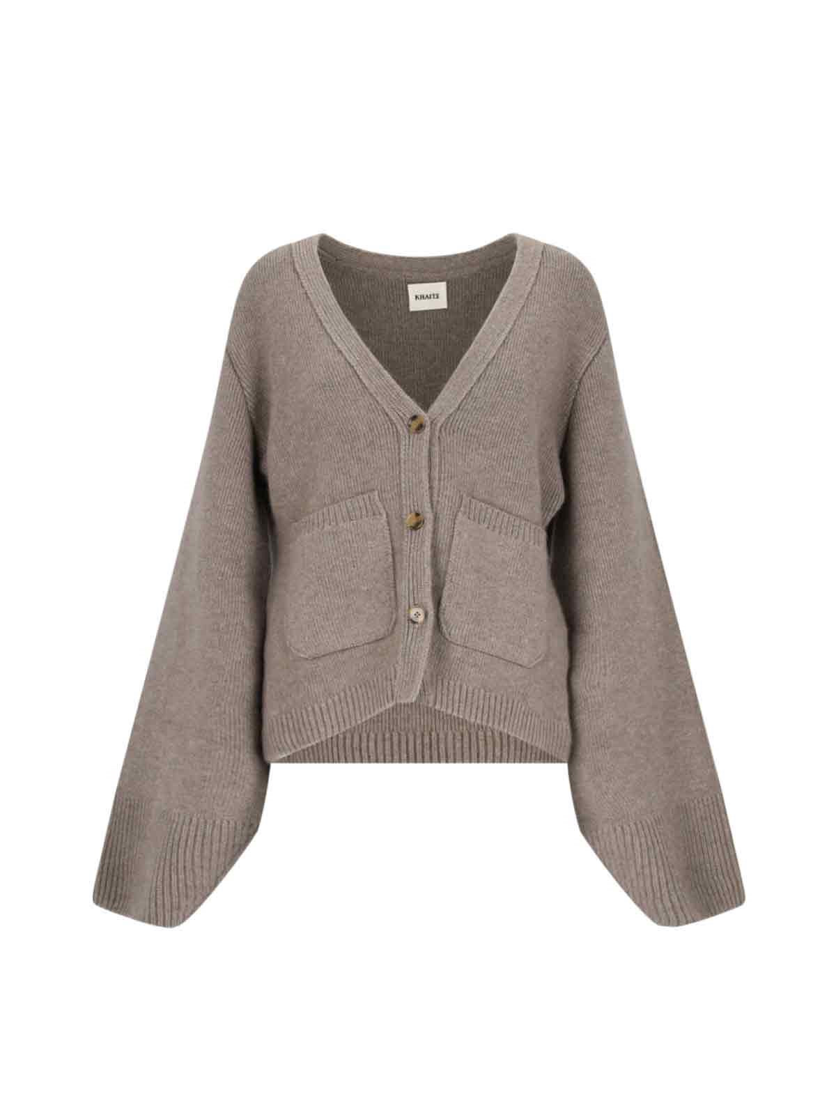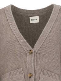 KHAITE 'SCARLET' BEIGE CASHMERE CARDIGAN WITH V-NECK, WIDE SLEEVES, BUTTON CLOSURE, RIBBED TRIM, TWO FRONT PATCH POCKETS, STRAIGHT HEM. PRODUCT INFO PRODUCT CODE 8267600 K600216 COMPOSITION: 100% CASHMERE SIZE AND FIT: ADJUST MADE IN: MONGOLIA