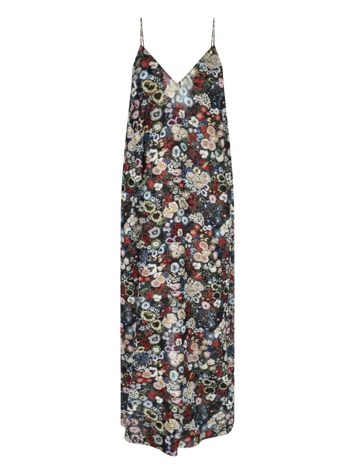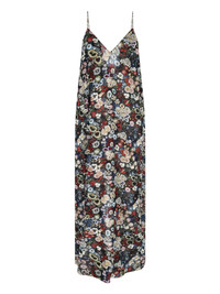 KHAITE MAXI TAJA DRESS IN MULTICOLOR SILK CHIFFON WITH FLORAL PATTERN, THIN STRAPS, FRONT V-NECK, BACK ZIP CLOSURE, ONE BACK SPLIT, AND STRAIGHT HEM. PRODUCT INFO PRODUCT CODE 55953372 W3372283 COMPOSITION: 100% SILK SIZE AND FIT: REGULAR FIT MADE IN: KOREA