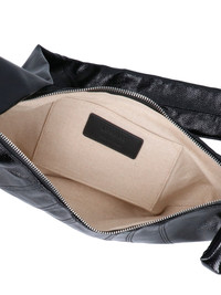 LEMAIRE 'CROISSANT' SMALL SHOULDER BAG IN BLACK COATED COTTON WITH DRAPED DETAILS, SHOULDER STRAP, ZIP CLOSURE, MAXI ZIPPER DETAIL, INNER FLAT POCKET, MAIN INNER COMPARTMENT. PRODUCT INFO PRODUCT CODE BG0003 LF1329BK999 COMPOSITION: 100% COTTON SIZE AND FIT: H 16 X W 35 X D 5 CM MADE IN: TUNISIA - STRAP DROP: 43 CM