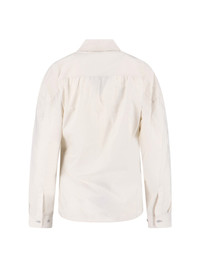 LEMAIRE DRAPED SHIRT IN CREAM COTTON AND SILK BLEND WITH CLASSIC COLLAR, BUTTON CLOSURE WITH DROPPED SHOULDERS, BUTTON CUFFS, STRAIGHT FRONT HEM AND CURVED BACK. PRODUCT INFO PRODUCT CODE SH1141 LF1500WH048 COMPOSITION: 80% COTTON, 20% SILK SIZE AND FIT: REGULAR FIT