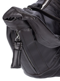 LEMAIRE CROISSANT LARGE SHOULDER BAG IN BLACK LEATHER, ADJUSTABLE TOP HANDLE, ZIP CLOSURE, LEATHER KNOT DETAILS, SIDE STITCHING DETAILS, OUTER ZIP POCKET, REMOVABLE LEATHER POUCH, AND MAIN INNER COMPARTMENT. PRODUCT INFO PRODUCT CODE BG0000 LL095BR490 COMPOSITION: 100% LEATHER MADE IN: SPAGNA