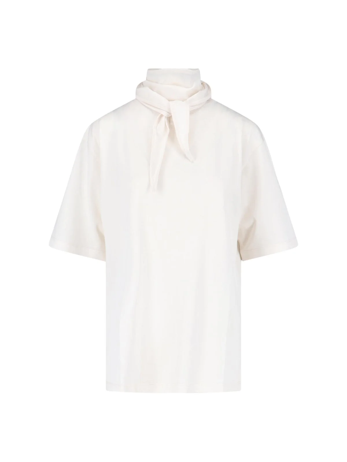 LEMAIRE FOULARD T-SHIRT IN CREAM COTTON WITH ADJUSTABLE SCARF, DROPPED SHOULDERS, SHORT SLEEVES, RIBBED TRIM, STRAIGHT HEM. PRODUCT INFO PRODUCT CODE TS0030 LJ1018WH048 COMPOSITION: 100% COTTON SIZE AND FIT: SOFT FIT MADE IN: PORTUGAL