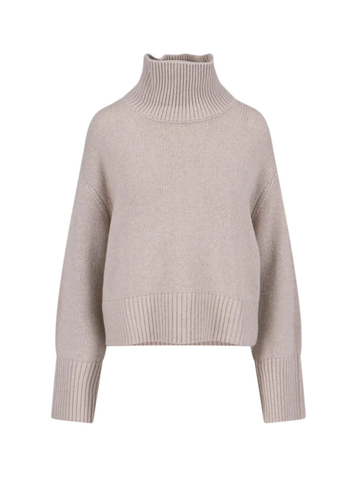 LISA YANG 'FLEUR' BEIGE CASHMERE SWEATER KNITTED, HIGH NECK, RIBBED TRIM, DROPPED SHOULDERS, STRAIGHT HEM. PRODUCT INFO PRODUCT CODE 2022098SA COMPOSITION: 100% CASHMERE SIZE AND FIT: REGULAR FIT MADE IN: CHINA