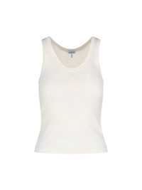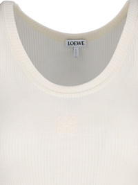 LOEWE 'ANAGRAM' WHITE RIBBED SILK TANK TOP WITH ROUND NECKLINE, THIN STRAPS, TONAL LOGO EMBROIDERY ON THE CHEST, STRAIGHT HEM. PRODUCT INFO PRODUCT CODE S540Y23X461950 COMPOSITION: 100% SILK SIZE AND FIT: REGULAR FIT MADE IN: PORTUGAL