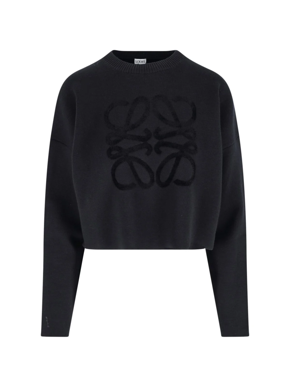 LOEWE 'ANAGRAM' BLACK WOOL BLEND SWEATER WITH CREW NECK, LONG SLEEVES, 'ANAGRAM' LOGO DETAIL ON THE FRONT, RIBBED TRIM, STRAIGHT HEM. PRODUCT INFO PRODUCT CODE S359Y14KJM1100 COMPOSITION: 57% WOOL, 25% VISCOSE, 17% POLYAMIDE, 1% ELASTANE SIZE AND FIT: REGULAR FIT MADE IN: ITALY