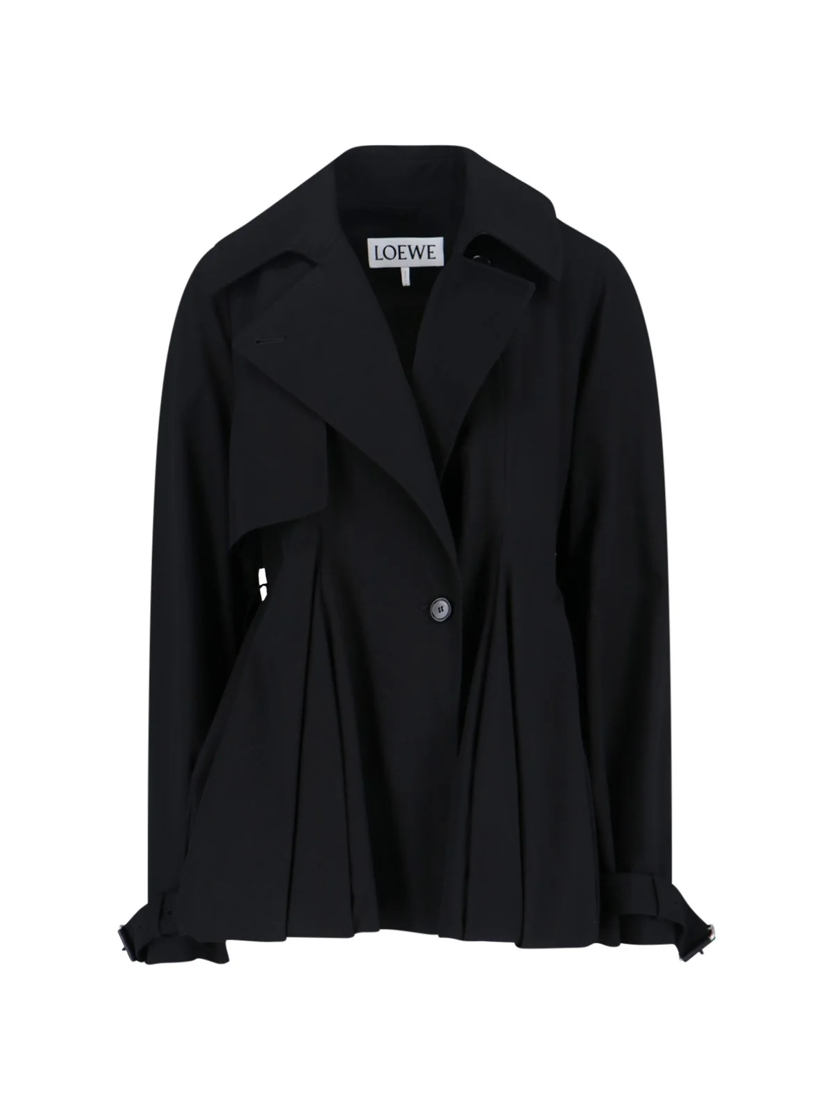 LOEWE BALLOON JACKET IN BLACK COTTON GABARDINE WITH CLASSIC LAPELS, BUTTON CLOSURE, ADJUSTABLE BELT AT THE WAIST, SILVER METAL BUCKLE, STITCHING POCKETS, BUTTON CUFFS, DRAWSTRING HEM, STRAIGHT HEM. PRODUCT INFO PRODUCT CODE S540Y02XCE1100 COMPOSITION: 100% COTTON SIZE AND FIT: REGULAR FIT MADE IN: ITALY