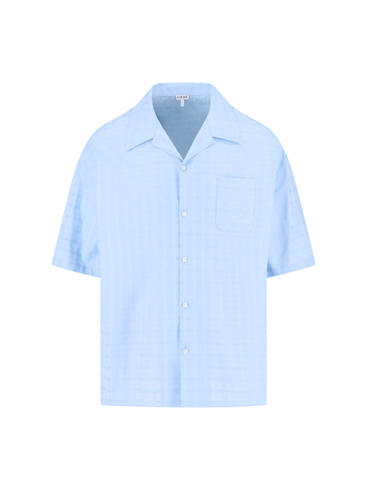 LOEWE CHECKED LOGO SHIRT IN LIGHT BLUE COTTON WITH CLASSIC LAPELS, BUTTON CLOSURE, DROPPED SHOULDERS, SHORT SLEEVES, CHEST POCKET, LOGO EMBROIDERY ON THE CHEST, STRAIGHT HEM. PRODUCT INFO PRODUCT CODE H526Y05WEX5140 COMPOSITION: 100% COTTON SIZE AND FIT: SOFT FIT MADE IN: ITALY