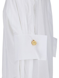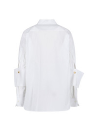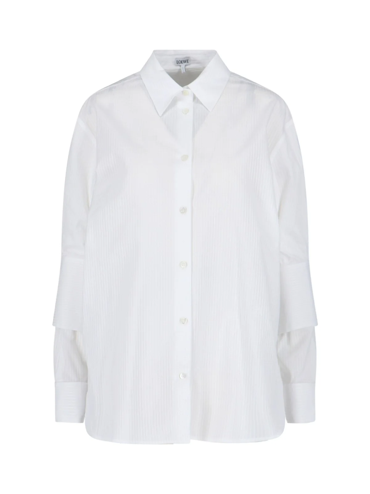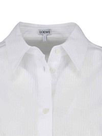 LOEWE WHITE COTTON SHIRT WITH CLASSIC COLLAR, BUTTON CLOSURE, SIDE ANAGRAM EMBROIDERED LOGO, BUTTON CUFFS, GOLD METAL BUTTON DETAIL, CURVED HEM. PRODUCT INFO PRODUCT CODE S540Y05XC92100 COMPOSITION: 100% COTTON SIZE AND FIT: SOFT FIT MADE IN: ITALY