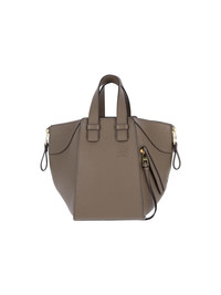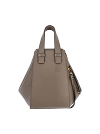 LOEWE 'HAMMOCK' BAG IN TAUPE HAMMERED LEATHER WITH ADJUSTABLE AND EXTENDABLE ZIP PANEL DESIGN, TWO RIGID TOP HANDLES, ADJUSTABLE AND REMOVABLE SHOULDER STRAP, GOLD ANAGRAM METAL LOGO DETAIL, TONAL ANAGRAM LOGO ON THE FRONT, SIDE ZIP POCKET, INNER HOOK CLOSURE, MAIN INNER COMPARTMENT, TWO INNER INNER POCKETS. PRODUCT INFO PRODUCT CODE A538H13X233170 COMPOSITION: 100% CALF LEATHER SIZE AND FIT: H 20.8 X W 14.4 X D 19.95 CM MADE IN: SPAIN - STRAP SPAN: 50 CM - HANDLE DROP: 10 CM