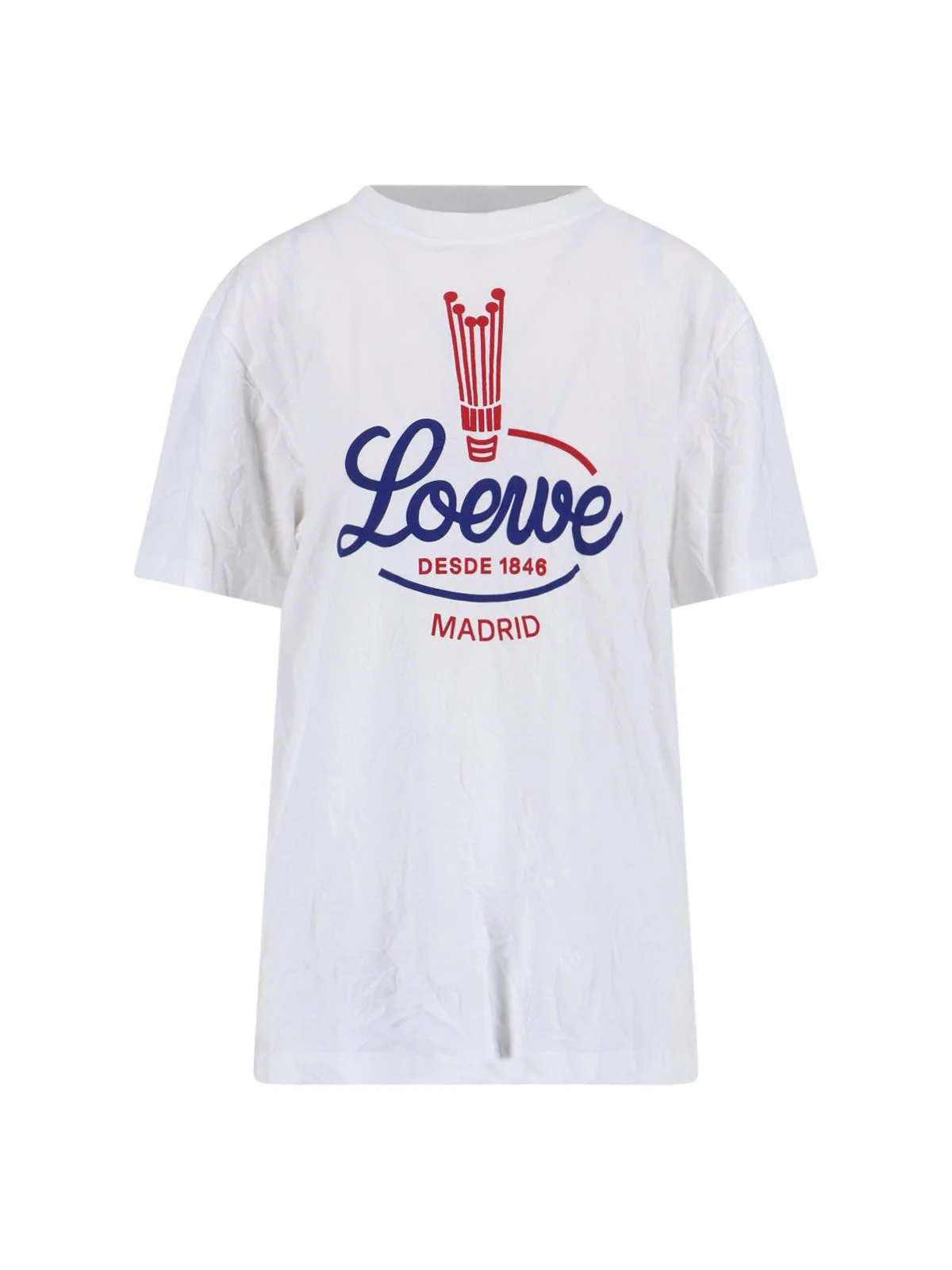 LOEWE LOGO T-SHIRT IN WHITE COTTON BLEND WITH CREWNECK, SHORT SLEEVES, CONTRASTING FRONT PRINT, AND STRAIGHT HEM. PRODUCT INFO PRODUCT CODE S540Y22X932100 COMPOSITION: 59.55% POLYESTER, 40.45% COTTON SIZE AND FIT: SOFT FIT MADE IN: PORTUGAL