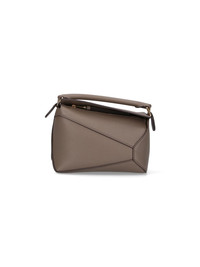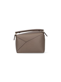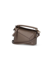 LOEWE "PUZZLE EDGE" MINI BAG IN TAUPE CALF LEATHER WITH PANEL DESIGN, TOP HANDLE, ADJUSTABLE AND REMOVABLE SHOULDER STRAP, ZIP CLOSURE, GOLD METAL HARDWARE DETAILS, EMBOSSED LOGO ON THE FRONT, SINGLE MAIN INNER COMPARTMENT. PRODUCT INFO PRODUCT CODE A510P88X603170 COMPOSITION: 100% CALF LEATHER SIZE AND FIT: H 12.5 X W 18 X D 8 CM MADE IN: SPAIN - STRAP SPAN: 108 - 137 CM - HANDLE DROP: 4 CM