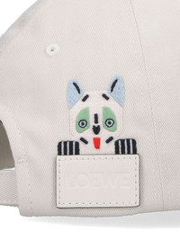 LOEWE X LOUIS WAIN BASEBALL CAP IN WHITE COTTON, CURVED VISOR ON THE FRONT, CONTRASTING EMBROIDERED LETTERING LOGO ON THE FRONT, ADJUSTABLE STRAP ON THE BACK, LOGO TAG EMBOSSED IN LEATHER ON THE SIDE, AND MULTICOLOR EMBROIDERY ON THE SIDE. PRODUCT INFO PRODUCT CODE K820358XAG1957 COMPOSITION: 80% COTTON, 20% CALF LEATHER MADE IN: ITALY