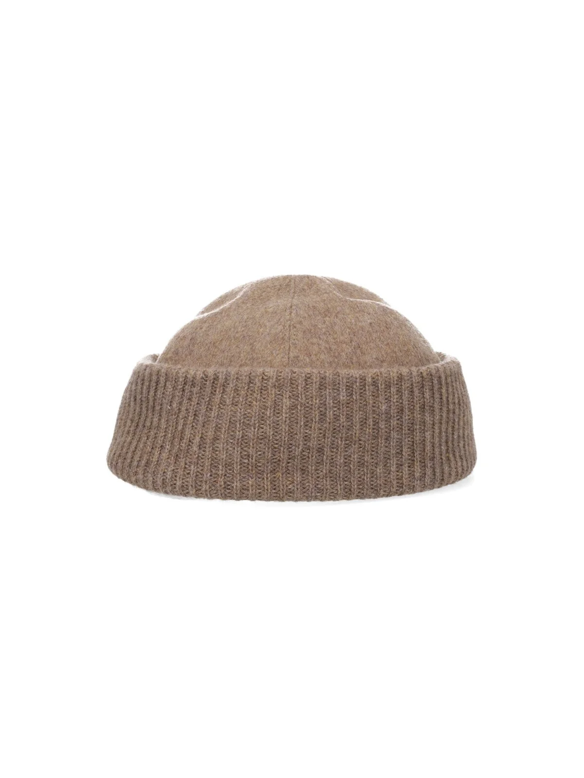 LORO PIANA BROWN CASHMERE CAP KNITTED, LEATHER LOGO DETAIL, MAXI TURN-UP DETAIL ON THE HEM. PRODUCT INFO PRODUCT CODE FAM3617H0BF COMPOSITION: 100% CASHMERE MADE IN: ITALY