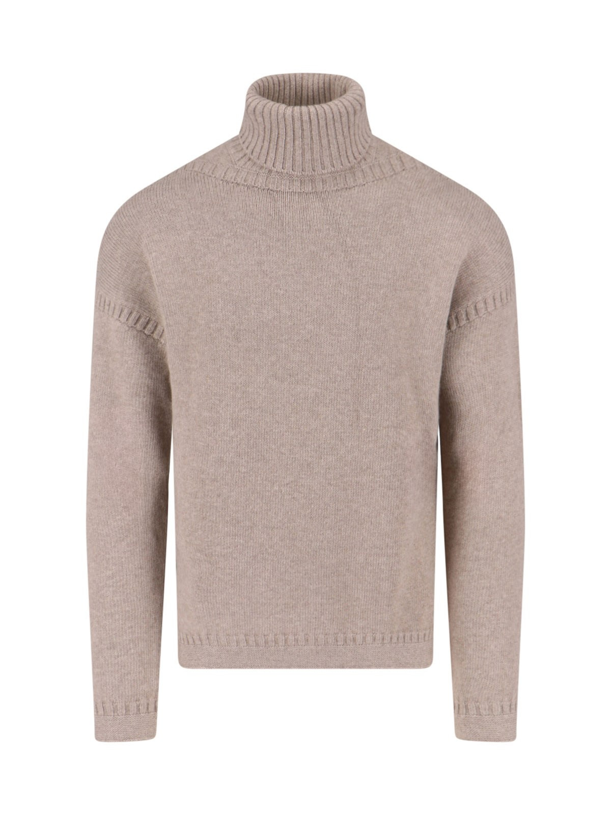 LORO PIANA BEIGE CASHMERE SWEATER WITH HIGH NECK, ALL-OVER RIBBED TRIM, STRAIGHT HEM. PRODUCT INFO PRODUCT CODE FAP5976D0V9 COMPOSITION: 100% CASHMERE SIZE AND FIT: REGULAR FIT MADE IN: ITALY