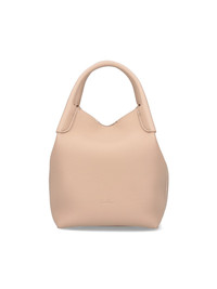 LORO PIANA 'BALE' SMALL BUCKET BAG IN BEIGE HAMMERED CALF LEATHER WITH TWO TOP HANDLES, SHOULDER STRAP, EMBOSSED LOGO ON THE FRONT, SILVER METAL CHARM CLOSURE, REMOVABLE INNER POUCH, SINGLE INNER COMPARTMENT. PRODUCT INFO PRODUCT CODE FAN8964D0Q6 COMPOSITION: 100% CALF LEATHER SIZE AND FIT: H 21 X W 17 X D 17 CM MADE IN: ITALY - HANDLE SPAN: 9 CM - STRAP SPAN: 54 CM