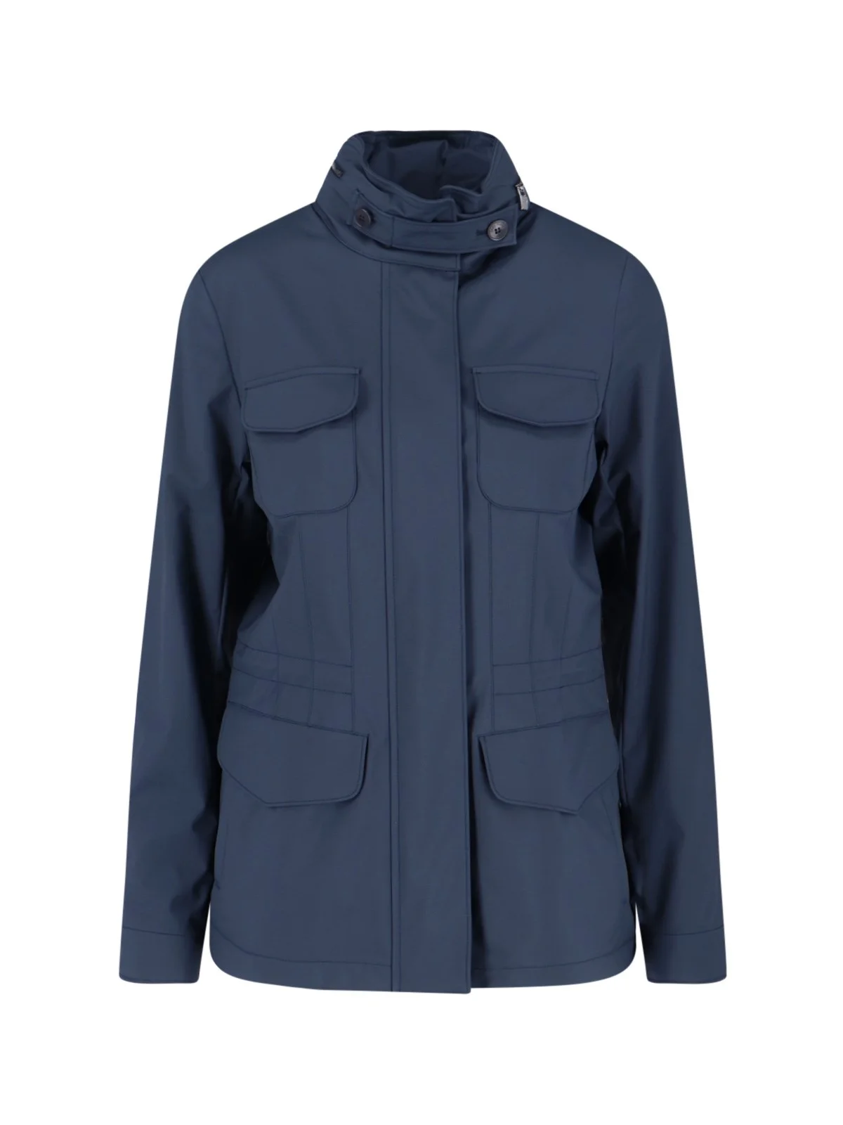 LORO PIANA 'WINDMATE®' JACKET IN NAVY BLUE NYLON WITH HIGH NECK, REMOVABLE HOOD AT THE BACK ZIP, EMBOSSED PADLOCK DETAIL, BUTTON AND ZIP CLOSURE, DRAWSTRING AT THE WAIST, FOUR FRONT POCKETS, BUTTON CUFFS, STRAIGHT HEM. PRODUCT INFO PRODUCT CODE FAP9758W000 COMPOSITION: 100% NYLON SIZE AND FIT: REGULAR FIT MADE IN: ITALY