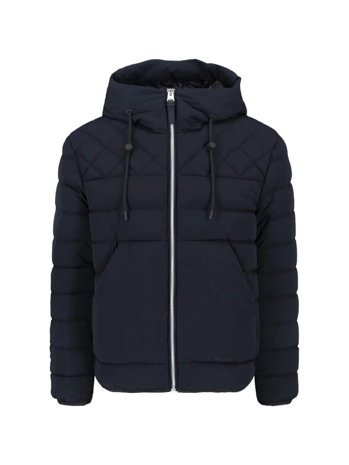 MACKAGE "BERGEN" DOWN JACKET IN BLACK RECYCLED FABRIC WITH QUILTED DESIGN, ADJUSTABLE DRAWSTRING DETAIL HOOD, HIGH NECK, ZIP CLOSURE, TWO FRONT ZIP POCKETS, TONE-ON-TONE LOGO ON THE FRONT, ELASTIC TRIMS, STRAIGHT HEM. PRODUCT INFO PRODUCT CODE BERGENBLACK COMPOSITION: 100% RECYCLED POLYAMIDE SIZE AND FIT: REGULAR FIT MADE IN: CHINA - PADDING: 90% RECYCLED DOWN, 10% RECYCLED FEATHERS