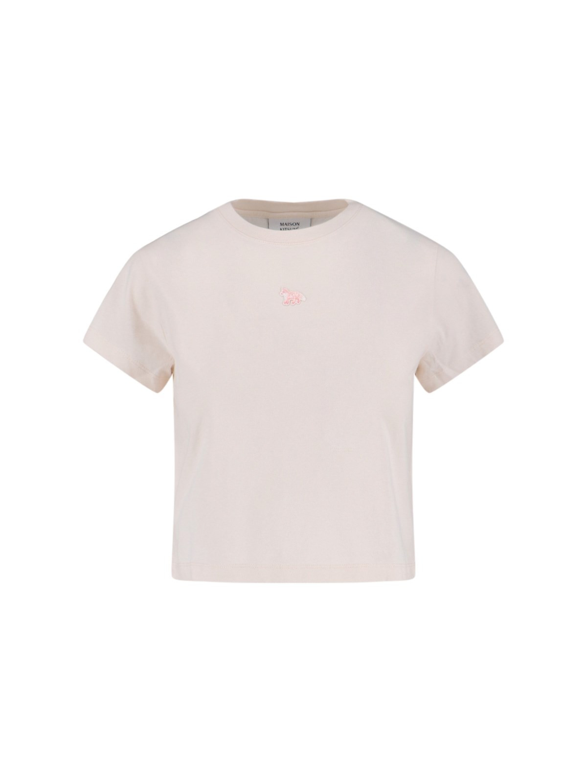 MAISON KITSUNE 'BABY FOX' CROP T-SHIRT IN PINK COTTON WITH CREW NECK, SHORT SLEEVES, TONAL LOGO EMBROIDERY ON THE FRONT, RIBBED TRIMS, STRAIGHT HEM. PRODUCT INFO PRODUCT CODE MW00105KJ70260306 COMPOSITION: 100% COTTON SIZE AND FIT: SLIM FIT MADE IN: PORTUGAL