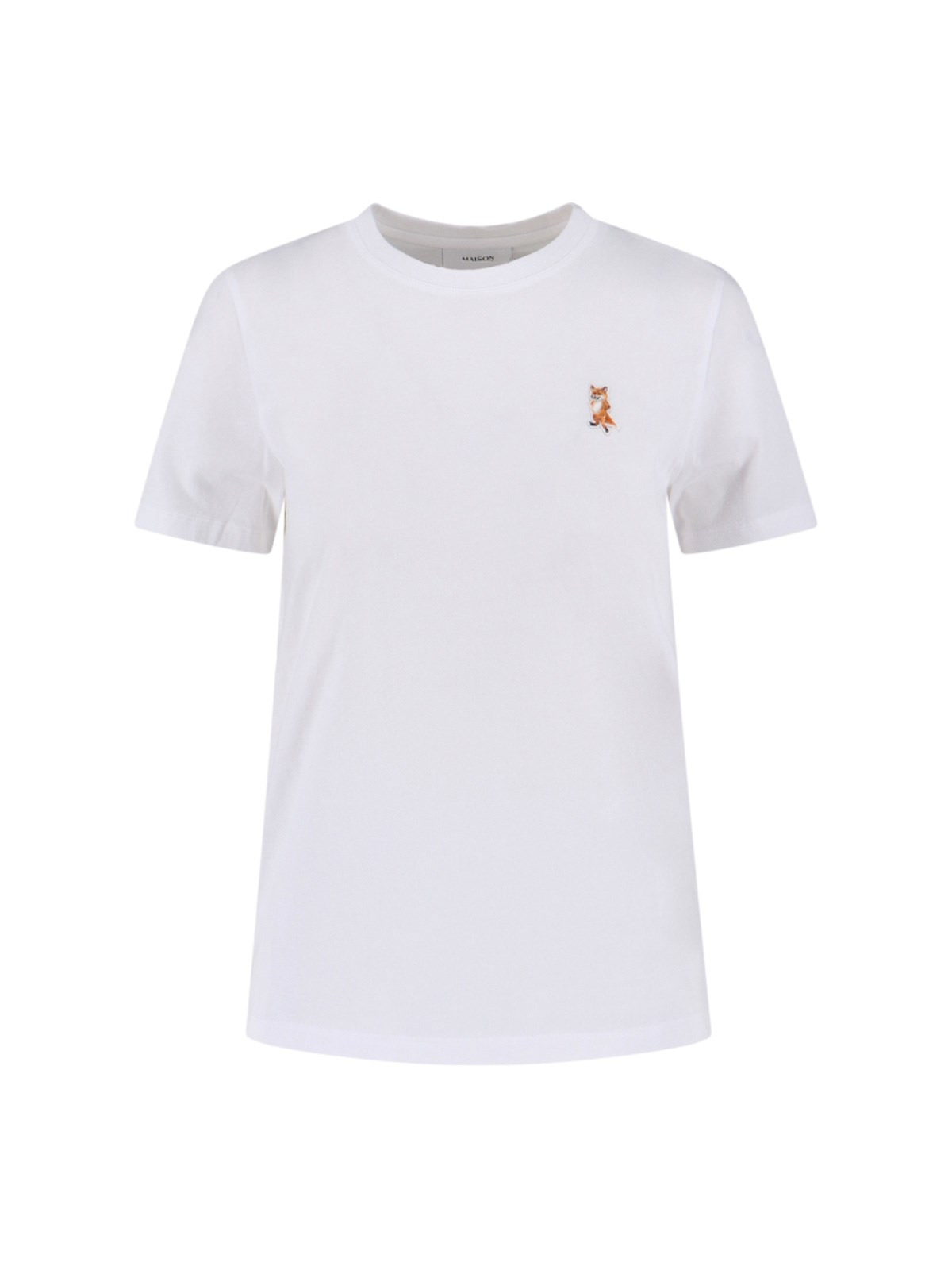 MAISON KITSUNE 'LADY FOX' WHITE COTTON CREW NECK T-SHIRT WITH SHORT SLEEVES, MULTICOLOR LOGO EMBROIDERY ON THE FRONT, RIBBED TRIMS, STRAIGHT HEM. PRODUCT INFO PRODUCT CODE PW00122KJ7026P100 COMPOSITION: 100% COTTON SIZE AND FIT: REGULAR FIT MADE IN: PORTUGAL