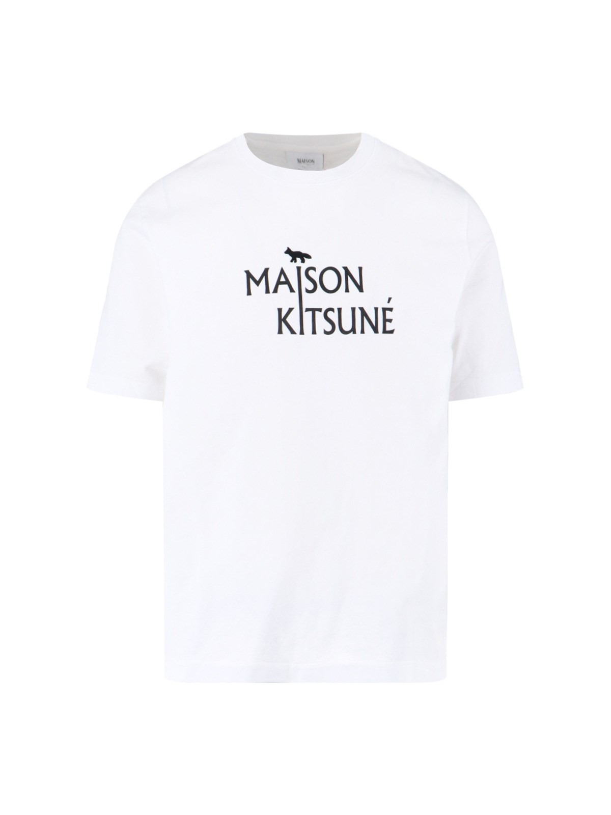 MAISON KITSUNE LOGO T-SHIRT IN WHITE COTTON WITH CREW NECK, SHORT SLEEVES, CONTRAST MAXI LOGO PRINT ON THE FRONT, STRAIGHT HEM. PRODUCT INFO PRODUCT CODE PM00115KJ7025P100 COMPOSITION: 100% COTTON SIZE AND FIT: REGULAR FIT MADE IN: PORTUGAL