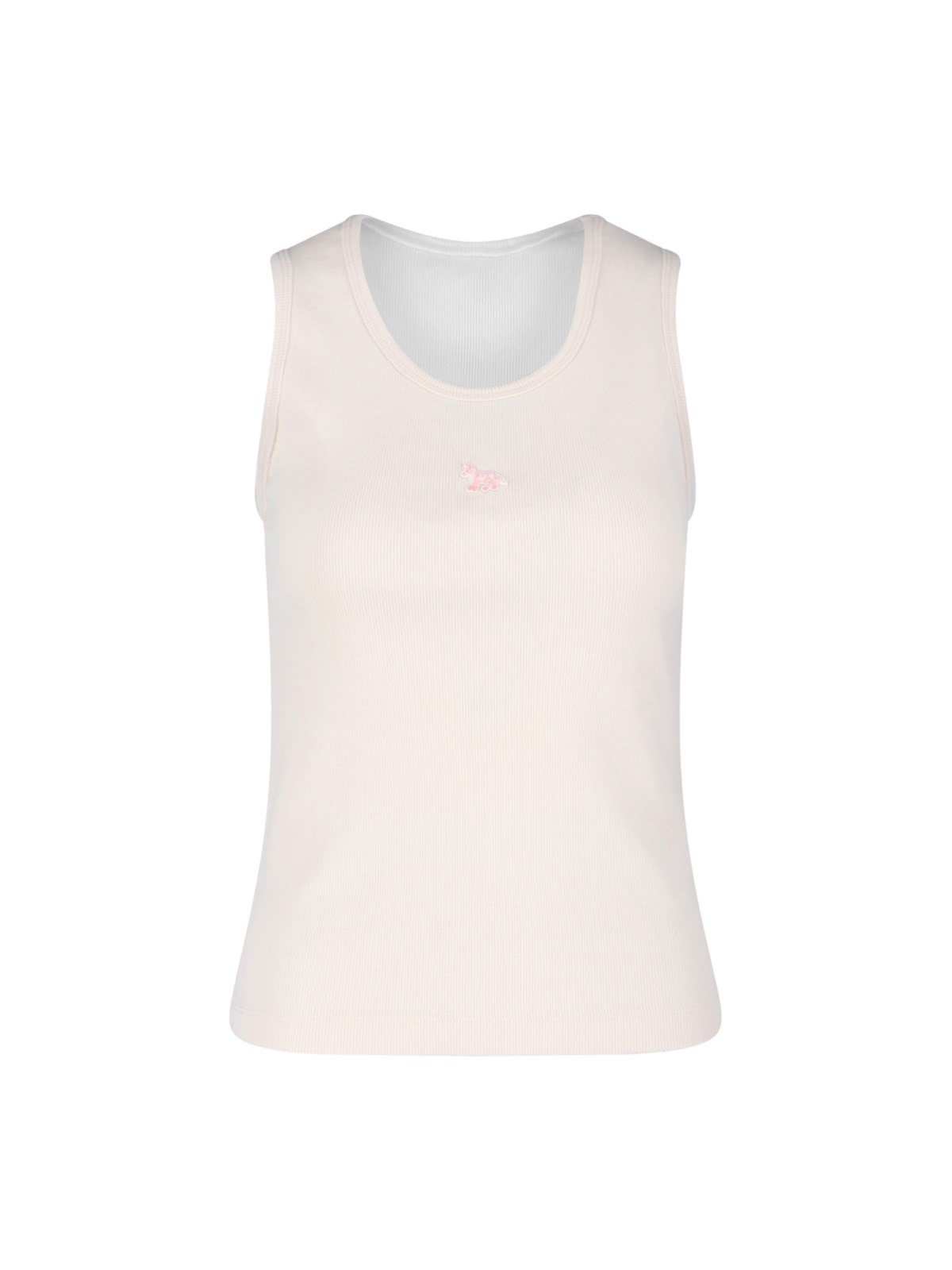 MAISON KITSUNE BABY FOX TANK TOP IN PINK COTTON, LIGHT SHADE, RIBBED KNIT, ROUND NECKLINE, PINK "BABY FOX" LOGO EMBROIDERY ON THE FRONT, STRAIGHT HEM. PRODUCT INFO PRODUCT CODE MW00121KA00330306 COMPOSITION: 100% COTTON SIZE AND FIT: SLIM FIT MADE IN: PORTUGAL