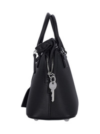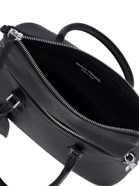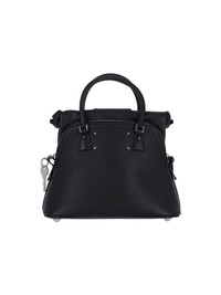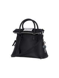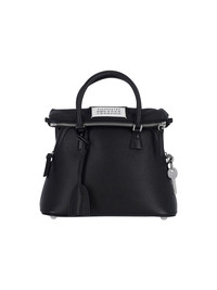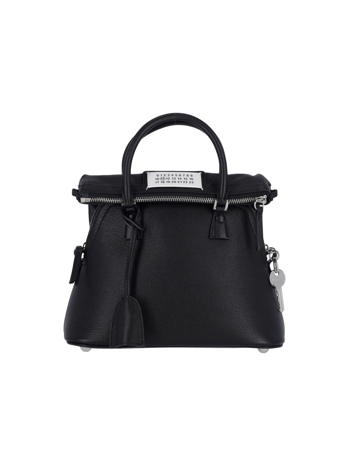 MAISON MARGIELA '5AC CLASSIQUE' MINI BAG IN BLACK HAMMERED LEATHER WITH TWO HANDLES, REMOVABLE SILVER METAL AND LEATHER CHAIN SHOULDER STRAP, MAGNETIC FLAP AND DOUBLE ZIP CLOSURE, CHARM DETAIL, 'NUMERIC' LOGO PATCH, 'FOUR STICHES STITCHING" CONTRASTING BACK, AN INNER FLAT POCKET, A SINGLE INNER COMPARTMENT, METAL FEET ON THE BOTTOM. PRODUCT INFO PRODUCT CODE SB1WG0037 P5348T8013 COMPOSITION: 100% GOAT LEATHER SIZE AND FIT: H 18 X W 26 X D 13 CM MADE IN: ITALY - HANDLE SPAN: 9 CM - STRAP SPAN: 65 CM