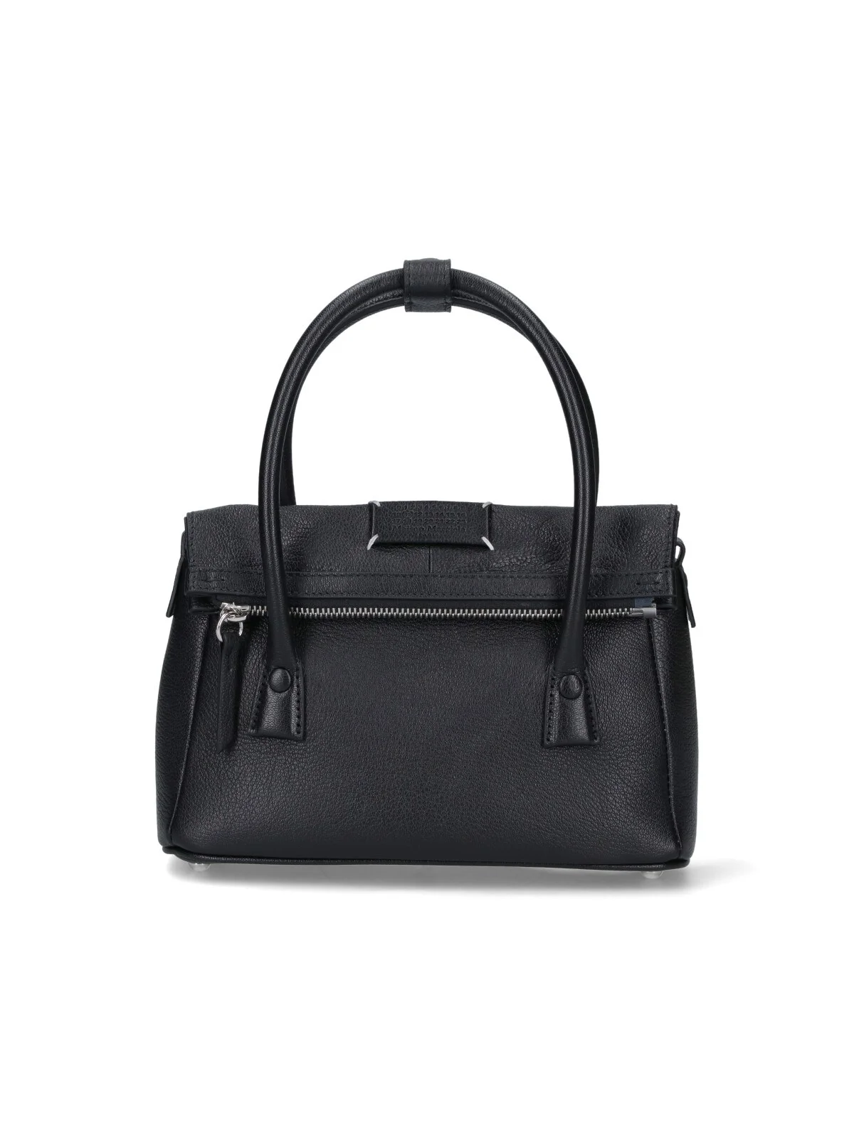 MAISON MARGIELA '5AC EAST WEST' BLACK SHEEPSKIN HANDBAG WITH TWO TOP HANDLES, ADJUSTABLE AND REMOVABLE SHOULDER STRAP, ZIP CLOSURE, 'NUMERIC' LOGO TAG ON THE FRONT, CONTRAST 'FOUR STITCHES' STITCHING DETAIL AT THE FRONT, INNER ZIP POCKET, SINGLE MAIN INNER COMPARTMENT. PRODUCT INFO PRODUCT CODE SB1WD0061 P5348T8013 COMPOSITION: 100% SHEEP LEATHER SIZE AND FIT: H 14 X W 23 X D 9 CM MADE IN: ITALY - STRAP SPAN: 70 - 120 CM