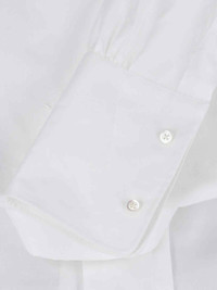 MAISON MARGIELA WHITE COTTON SHIRT WITH CLASSIC COLLAR, BUTTON CLOSURE, MAXI CUFFS, BUTTON CUFFS, FOUR STITCHES EMBROIDERED LOGO ON THE BACK, CURVED HEM. PRODUCT INFO PRODUCT CODE S29DT0006 M35308100 COMPOSITION: 100% COTTON SIZE AND FIT: OVERSIZED FIT MADE IN: ITALY